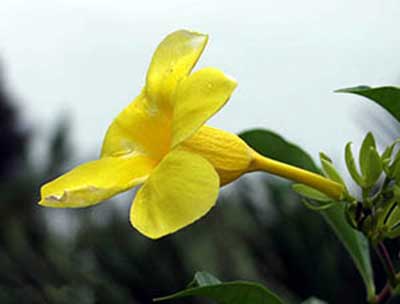 گل شیپور طلایی یا آلاماندا مشخصات: اسم علمی شیپور طلایی Allamanda cathartica و ازخانوده Apocynaceae می باشد. این گیاه بومی آمریكای جنوبی است. بلندی این گیاه به 3 تا 5 متر می رسد و گسترشی در حدود 3 تا 4 متر دارد. برگها به صورت متقابل و بیضی شكل بوده و نوك آنها باریك می باشد. در اواخر پاییز گیاه را باید هرس نمود تا شاخه های جانبی تحریك شوند و گلهای بیشتری بدهند. در زمستان باید در جه حرارت، حداقل 18 درجه سانتیگراد باشد و آب كمی به این گیاه داده شود. گلهای آلاماندا شیپوری و به رنگ طلایی و به طول 8 سانتی متر است و در اواسط تابستان ظهر می شود. مراقبت: این گیاه به نور متوسط، هوای گرم و مرطوب، خاك همیشه خیس و قلیایی احتیاج دارد. كود: كود مورد نیاز شیپور طلایی را می توان به میزان 5 گرم در لیتر هر هفته یك بار، از اردیبهشت تا شهریورماه، استفاده كرد. خاك: مخلوطی از یك قسمت تورب، یك قسمت خاك برگ و یك قسمت خاك باغچه برای این گیاه مناسب می باشد. ازدياد: آلاماندا را میتوانید در اواسط بهار تا اوایل تابستان از قلمه های انتهایی ساقه تكثیر كنید. قلمه ها را به طول10-8 سانتیمتر از گیاه جدا كنید و در پودر هورمون ریشهزایی فرو برده و هر یك را در گلدان با قطر دهانه 9 سانتیمتر بكارید و قلمه را با كیسه پلاستیكی شفاف بپوشانید دما با زمان ریشه دهی باید 20 تا 22 درجه سانتیگراد نگاه داشته شود این مدت نزدیك به 6 تا 8 هفته می باشد. آلاماندا به نور زیاد احتیاج دارد اما باید از تابش مستقیم نور خورشید محفوظ بماند. جهت فرم دهی و توپی و پرپشت شدن گیاه هر ساله در بهار طول ساقه ها را حداكثر به 15 سانتیمتر كاهش دهید. عمل هرس را از سال دوم به بعد شروع كنید. عوارض و درمان: اگر مشاهده كردید كلیه اندام گیاه شده اند ممكن است مواد براق كننده شیمیایی به آن آسیب رسانده باشد. ساقه های خیلی دراز گیاه در اثر نور كم و هرس نكردن ایجاد می شود بنابراین آلاماندارا به محل پر نور اما دور از اشعه مستقیم آفتاب منتقل كنید و شاخه های آن را هرس نمایید. اگر در زمستان یا تابستان برگها پیچیده و قهوه ای شدند یعنی هوا خیلی سرد است. هوای سرد و مرطوب خصوصا در زمستان گاهی باعث می شود برگها سیاه شوند و ساقه حالت پوسیدگی به خود بگیرند در این صورت باید گیاه را به محل گرم و خشك تری منتقل كنید و با سم قارچكش سمپاشی انجام بدهید. زخمهای پنبه ای در محل قاعده برگ نشانه فعالیت حشره آفت است كه باید با سم حشره كش نفوذی هر دو هفته یكبار سمپاشی نموده و یا با پنبه آغشته به سم لكه ها را خیس نمائید. برگهای زرد و مملو از تار عنكبوت هم نمایانگر فعالیت كنه ها است كه بایستی با سم كنه كش سمپاشی كنید و یا با اسفنج مرطوب سطح زیر برگها را پاك گردانید. برگهای جدید گیاه در صورت ریز ماندن به تغذیه مصنوعی نیاز دارد و ظاهر شدن گلها مربوط به نور كم یا تغذیه نامناسب است. همچنین سرمای زیاد در زمستان و یا تشنگی گیاه در تابستان باعث خمیده شدن و افتادن گیاه به سمت پایین می شود.